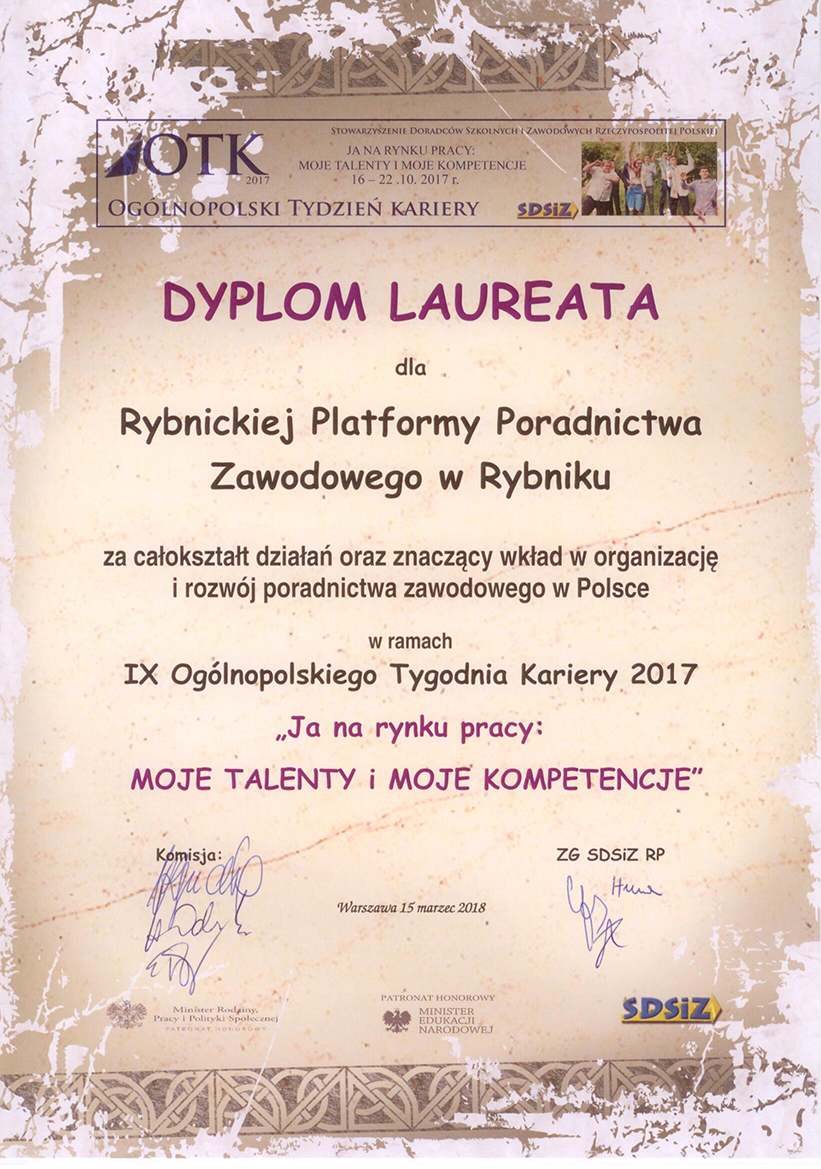 Wkład, jaki daje RPPZ w coroczną organizację Rybnickich Dni Kariery w ramach OTK, jest wart podkreślenia, ponieważ systematycznie doprowadza do wzrostu zainteresowania młodzieży doradztwem zawodowym oraz możliwościami edukacji w regionie. Niezależne jury oceniające realizację tygodnia kariery, doceniło ogrom działań Platformy, przyznając jej tytuł laureata w każdej z dotychczasowych edycji Ogólnopolskiego Tygodnia Kariery. Podczas kampanii doradczej prowadzone są m.in. warsztaty, prelekcje, konkursy zawodoznawcze, happeningi, konferencje, treningi, interaktywne gry miejskie, porady i konsultacje indywidulane, które przynoszą korzyści dla całej społeczności lokalnej. Za sprawą działań RPPZ, mieszkańcy Rybnika i powiatu mają łatwiejszy dostęp do usług całożyciowego poradnictwa kariery.