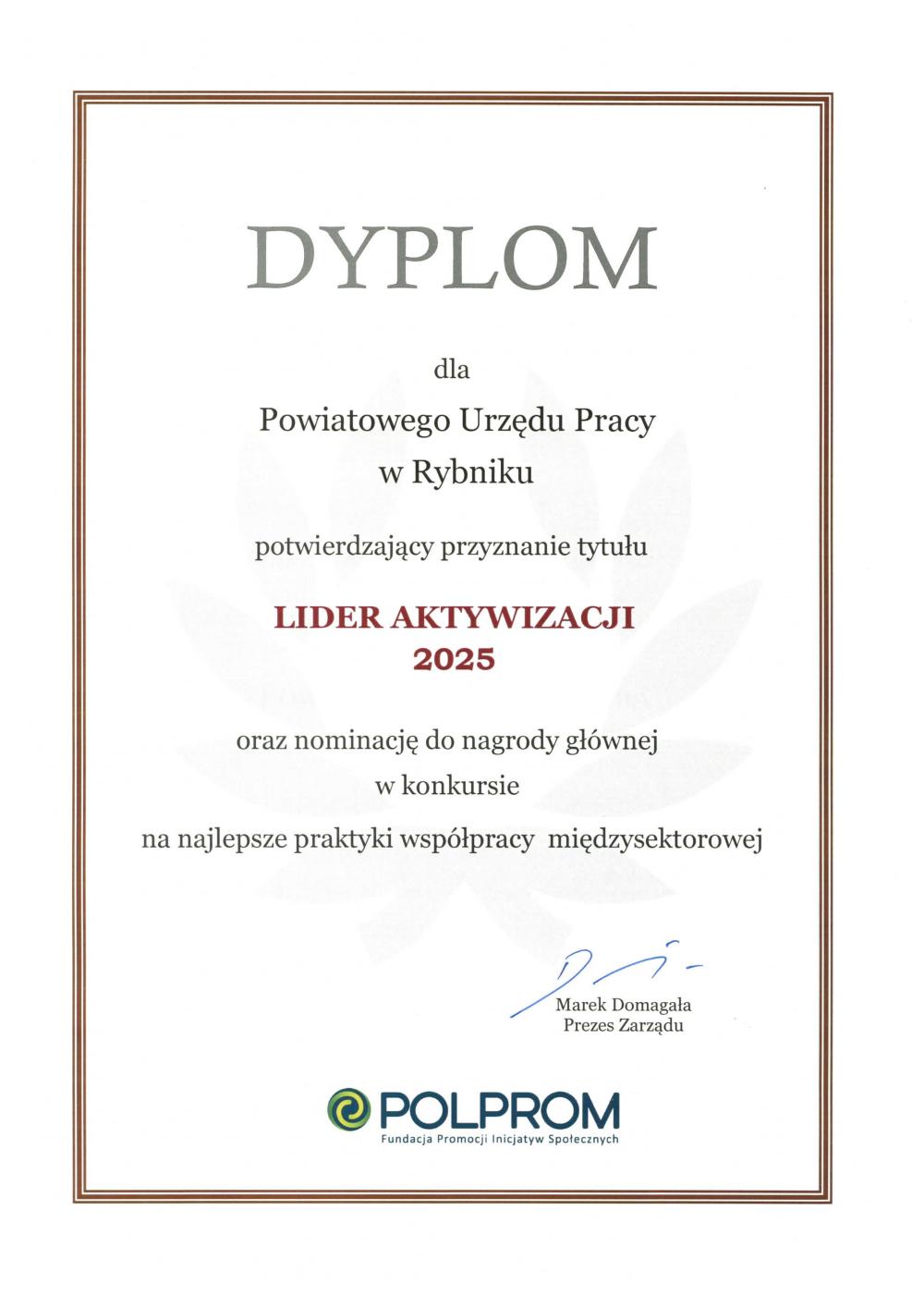 Z przyjemnością informujemy, że Powiatowy Urząd Pracy w Rybniku został uhonorowany tytułem „Lider Aktywizacji 2025”! Jest to dla nas nie tylko zaszczyt, ale również ogromne wyróżnienie, zwłaszcza że znaleźliśmy się w gronie instytucji nominowanych do nagrody głównej.