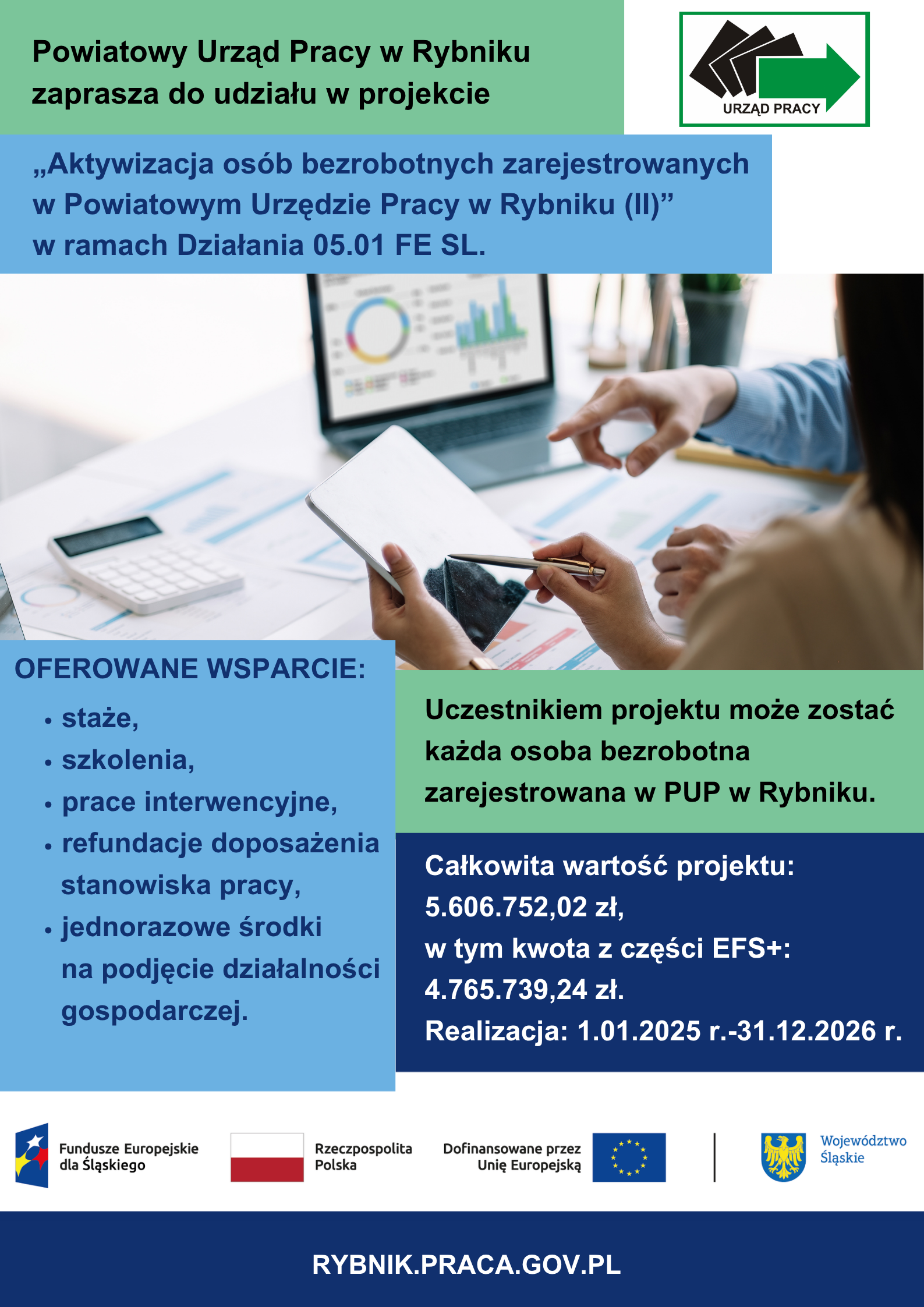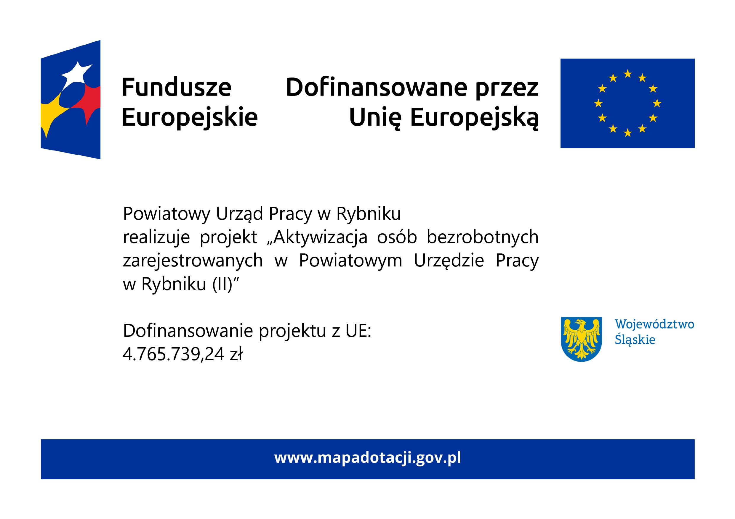 Powiatowy Urząd Pracy w Rybniku zaprasza do udziału w projekcie: „Aktywizacja osób bezrobotnych zarejestrowanych w Powiatowym Urzędzie Pracy w Rybniku (II)"