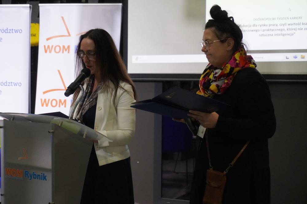 W dniu 23 października br. Dyrektor Powiatowego Urzędu Pracy w Rybniku, Dorota Małyszko, na zaproszenie Dyrektor Regionalnego Ośrodka Doskonalenia Nauczycieli i Informacji Pedagogicznej „WOM” w Rybniku, Sylwii Bloch, wzięła udział w konferencji pn. „Edukacja dla rynku pracy, czyli wartość kształcenia branżowego i praktycznego, której nie zastąpi sztuczna inteligencja”. Wydarzenie to, o istotnym znaczeniu dla rozwoju lokalnego i regionalnego rynku pracy, zostało zorganizowane w ramach Ogólnopolskiego Tygodnia Kariery